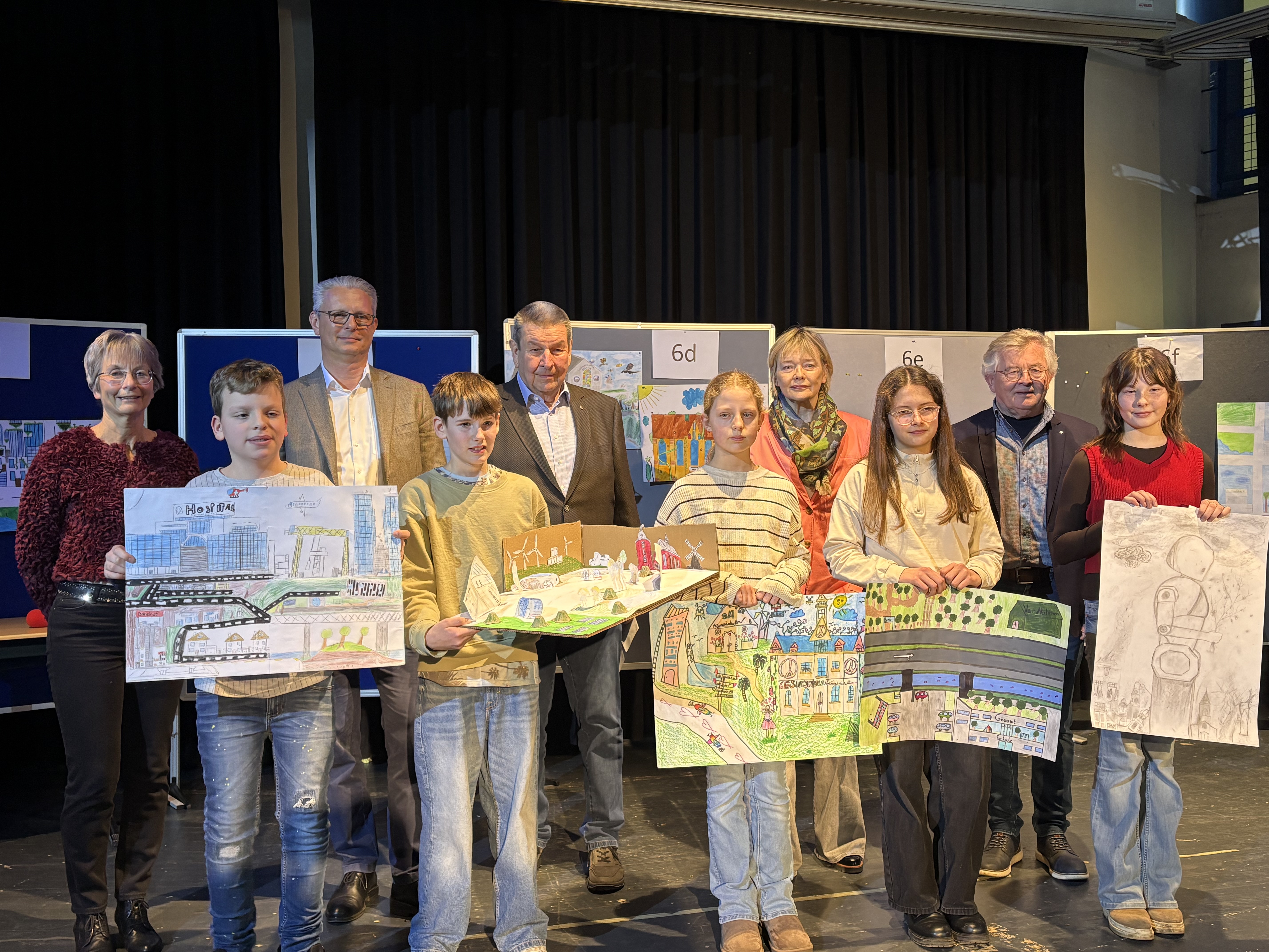 Das Thema des diesjährigen Plakat Wettbewerbs ist nicht im Kern der Frieden, sondern, wie sehen die Kinder Hamminkeln in 25 Jahren. „Das ist für die Kinder sicherlich Kein einfaches Thema gewesen“ so Frau Schmücker. „Anhand der Vielfalt der Bilder kann man erkennen, was euch bewegt. Fragen wie: wie wird Hamminkeln in 25 Jahren aussehen? Mit Flughafen? Mit Shopping-Mall? Bleiben Denkmäler erhalten? Wie könnt ihr mit Familien in 25 Jahren leben?“